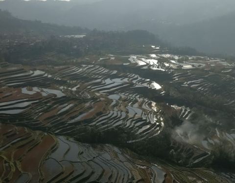 这也是观看日落的好地方,日落时梯田色彩更加绚丽