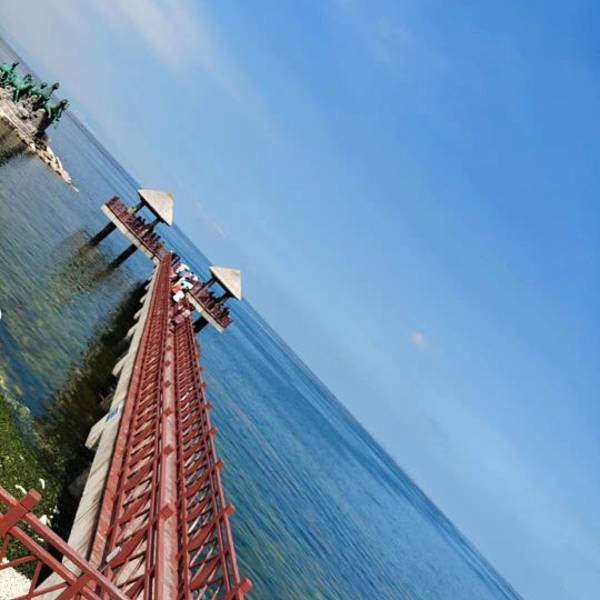离开东炮台沿着海岸线继续前行,在东山宾馆北门,一路之隔,就是有名的东山栈桥。这是烟台最别致的栈桥,形若一把“吉它”,尽端是“荷花瓣”的竞海广场。东山栈桥长约200多米,一个特色是直桥桥面设置透明桥面,...
