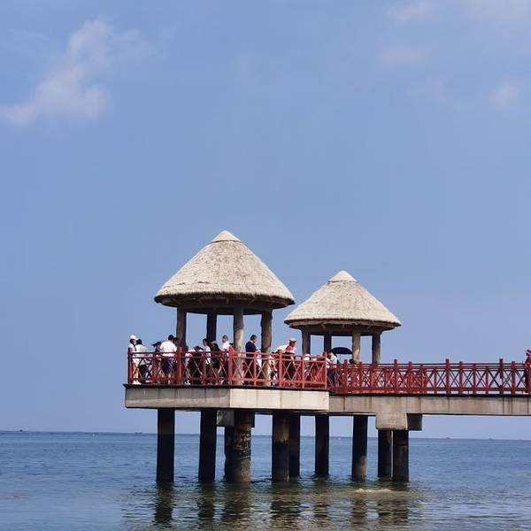 东山栈桥在东炮台海滨风景区的山脚下海滩,这是一处主要是游客坐船的码头,不坐船拍下照到也蛮有意思的东山栈桥在东炮台海滨风景区的山脚下海滩,这是一处主要是游客坐船的码头,不坐船拍下照到也蛮有意思的。桥尾的小亭楼,可以进入,里面是卖纪念品的。