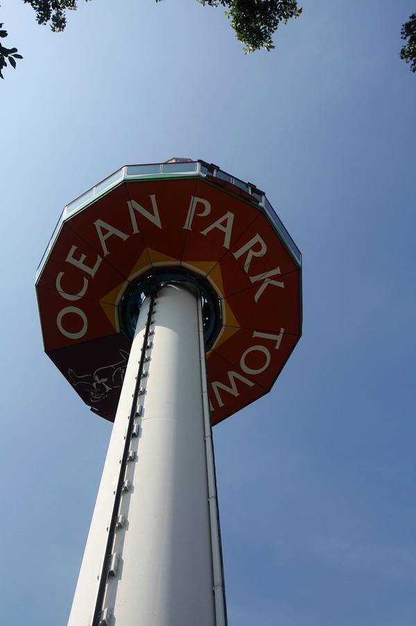 在香港海洋公园内,属于山上景区。因为塔身很高,在山上的各个区块都能看得到在香港海洋公园内,属于山上景区。因为塔身很高,在山上的各个区块都能看得到。观景转台是封闭的,一次可以进几十人,相当大的。