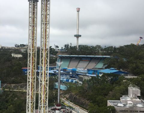就是上去观光用的,就在几个区域的中间位置,可以上去俯瞰整个公园还有香港岛。 但是没有什么太大的特别,因为这里并不算是特别的高,也算是比较的缓慢就上去了,所以的话比较适合不喜欢刺激运动的人,也是一个经常维护的设施。