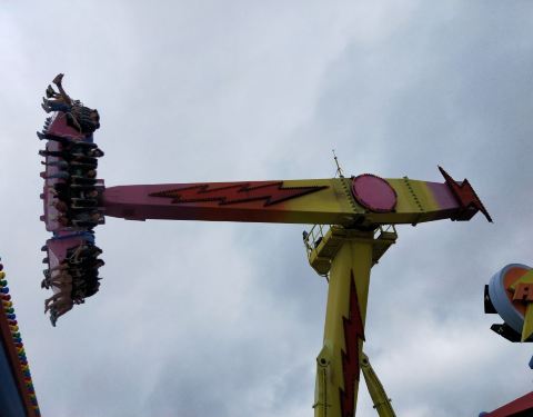 海洋列车高峰站出来,第一个机动游戏就是翻天覆地。一点不假,人被机器带入空中,座椅旋转,让人直至倒栽葱,此时稍稍停顿、再微微摇晃,可能从顺时针转到逆时针接着再翻。不可谓不惊险刺激。