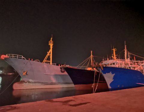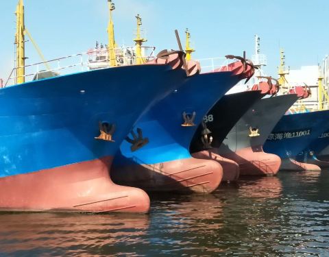...所以船家大都在家对船进行修补,港区人不多,对面马路是卖海鲜干货的,比起舟山来,规模还是要小很多