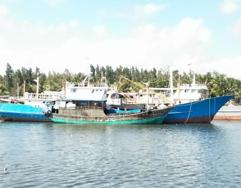 ...普通的渔港,可能在湛江,还有阳江那边都看过类似的,但是这边比较独特的一个地方,就是船特别的多了
