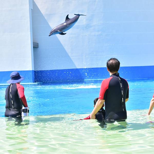 在真正到浅摊互动之前,讲解员带我们到 海豚湾 实验室参观,详细讲解了海豚和海狮饲养的知识,让我...