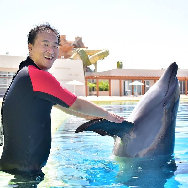 超级赞的和海豚互动呀,赞一个,除了贵没毛病