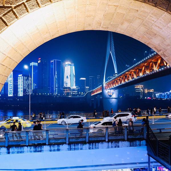 建议路线从解放碑游玩开始可以一路步行过来,经过重庆国泰艺术中心,到洪崖洞前不急进去,先走到一旁的千厮门大桥上,感受下高空俯瞰洪崖洞的美景,再回去从洪崖洞顶层往下逛,逛完到楼下路对面,正好拍夜景照,沿着江边一路跟着人流向东走,就到了重庆朝天门广场,看看长江和嘉陵江的交汇口,远望江里美轮美奂的游船,仰视重庆新地标来福士广场,重庆的一夜就是这么精彩纷呈。 展开