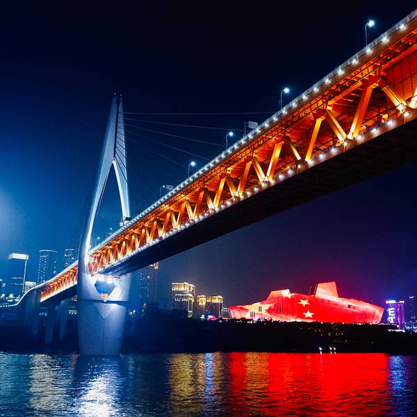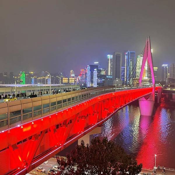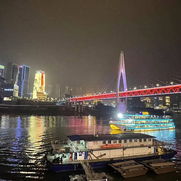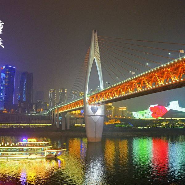 强烈推荐夜间前往,看大桥的最佳观赏地是在洪崖洞和两江夜游,沿途欣赏洪崖洞、大剧院等景点的夜景,...- 千厮门嘉陵江大桥是重庆市境内连接渝中区与江北区的过江通道,位于嘉陵江水道之上,为重庆市区北部城市次干道路的组成部分。千厮门嘉陵江大桥在设计上,将桥梁整体融入重庆山水之中,充分展现重庆的“山水城桥”...- 千厮门嘉陵江大桥是重庆市境内连接渝中区与江北区的过江通道,位于嘉陵江水道之上,为重庆市区北部城市次干道路的组成部分。千厮门嘉陵江大桥在设计上,将桥梁整体融入重庆山水之中,充分展现重庆的“山水城桥”之美,在选址上与最具巴渝传统建筑特色“吊脚楼群”风貌的洪崖洞比邻,古典建筑与现代桥梁交相辉映,满足人们过桥时的全新需求与体验。千厮门嘉陵江大桥主塔采用天梭形,两头小,中间大,流线型,像一把织布的梭子,既有一剑指天的阳刚之气,又有线性流畅的和谐之美,充分实现民族文化的创新与发展,成为当下著名的“网红”桥。2019年国庆期间,洪崖洞、解放碑、朝天门广场等热门景点迎来客流高峰时,每天下午时分,千厮门大桥就开始交通管控,直到晚饭过后,千厮门大桥双向交通封闭,外地游客们可以在大桥桥面上随意行走拍照,被网友们称为是“最长人行天桥”,也被认为是重庆“宠粉”的一项重要举措。强烈推荐夜间前往,看大桥的最佳观赏地是在洪崖洞和两江夜游,沿途欣赏洪崖洞、大剧院等景点的夜景,看万家灯火和霓虹闪烁倒映在波光荡漾的江水里,最直观立体地感受夜重庆,从你的全世界路过,也不要错过夜重庆… 展开