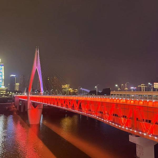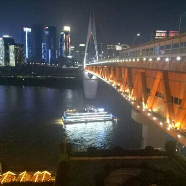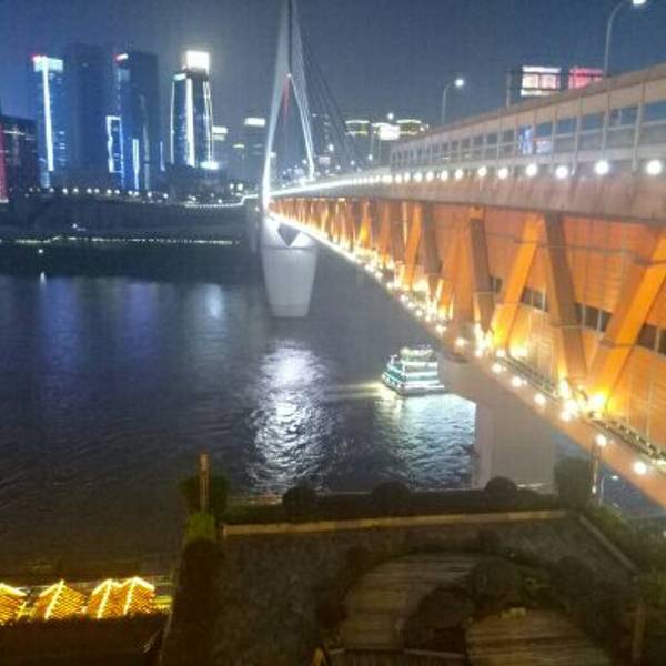 推荐大家沿着桥走一圈,往返下来一万多步,速度快一些的话,40分钟左右,穿上舒服一些的运动鞋,一...- 晚上的时候来洪崖洞看重庆夜景,旁边的大桥便是千厮门嘉陵江大桥,近观感觉非常的霸气,搭配上夜景,宛若明信片一般的风景。过来这边的交通也比较方便,洪崖洞的对面就有公交车站,还没下车,就看到不远处举着相...- 晚上的时候来洪崖洞看重庆夜景,旁边的大桥便是千厮门嘉陵江大桥,近观感觉非常的霸气,搭配上夜景,宛若明信片一般的风景。过来这边的交通也比较方便,洪崖洞的对面就有公交车站,还没下车,就看到不远处举着相机满满的人群。推荐先逛洪崖洞,在沿着嘉陵江一路步行过来,散散步,还可以近距离的欣赏大桥以及夜景。每个角度都有自己独特的美。而且在这里,还可以体验到上了一层楼,又是一条街的奇妙,很难在其他的景区体验到,嘉陵江大桥有专门的人行道,供人行走,有时间的话,推荐大家沿着桥走一圈,往返下来一万多步,速度快一些的话,40分钟左右,穿上舒服一些的运动鞋,一边在桥上走,一边用照相机记录下两岸的风景,凉风缓缓拂过,很是惬意,两岸的夜景与灯光也是很棒的。 展开