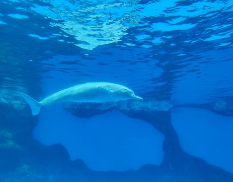 ...竟是最受喜爱的明星啊,中华白海豚是一个独立的馆,里面好多白海豚,可以水上看也可以水下看,好可爱