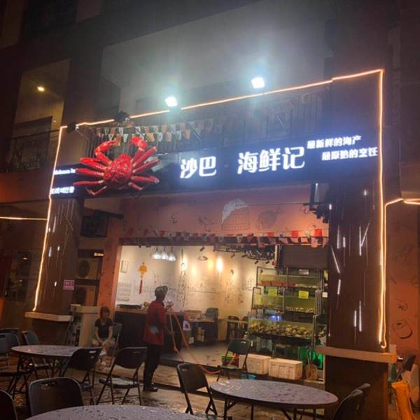 小店在靠近海岸线酒吧街的地方,店名招牌比较明显。门口的水缸里各类海鲜活蹦乱跳,十分新鲜。老板是华人同…
