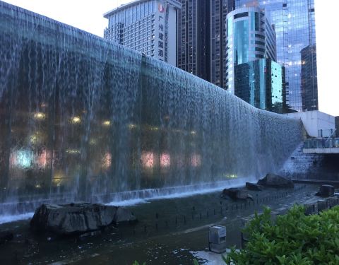 这个地方曾经是羊城八景之一,也是天河东站这边比较重要的一处人文景观,在这里其实也就是一个比较大型的人工瀑布,记得刚开始的时候,这边每天都有很多人过来看的,现在因为天气炎热,又是在户外,所以在这边过来看的人是越来越少了,应该在晚上或者说有活动的时候有灯光才好看的。