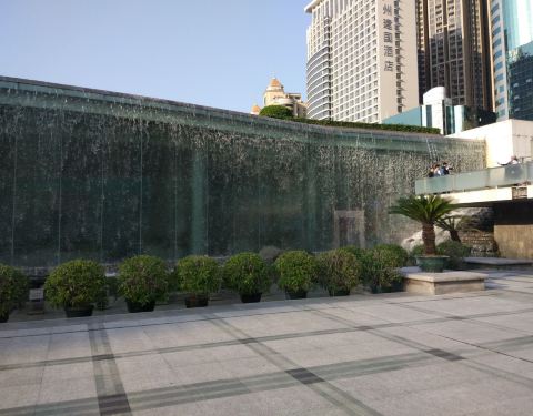 天河飘绢是新世纪羊城八景之一,其实就是一道人工的水幕瀑布,瀑布的后面是玻璃墙,如果在阳光灿烂的午后经过,走在瀑布前的水池边,可以感受到水气的清凉,挺舒服的。作为广州人,倒是见过这瀑布就几次而已,上午经常这里时,瀑布常是没开的(即是没有水),往往是下午经过才偶然看到它有哗哗的水流,时常看到有几台旅游大巴在广场前面停着,让游客去观赏一下这“天河飘绢”。不过说实话,如果是自助游来广州,这个景点不值得专程跑来一看,但如果是住宿在这边或来这边觅食或是从东站坐火车去其他城市,时间有多的话,倒是可以顺便瞧一瞧,仅此而已。