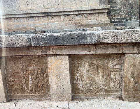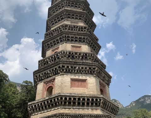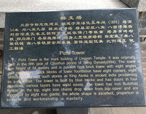 辟支佛塔是灵岩寺的主要标志,立于千佛殿西北。塔建于唐天宝十二年(公元753年),北宋太宗淳化五年(994年)重建,历时六十三年完工。塔是一座八角九层十二檐的楼阁式砖砌建筑,塔座有浮雕镌刻古印度孔雀王朝阿育...