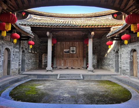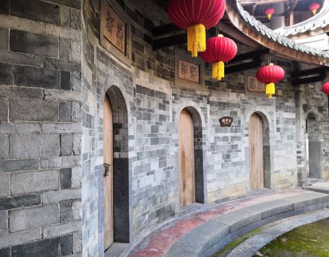 振福楼位于湖坑镇下南溪,依山傍水,风景十分秀丽。溪面宽阔平缓,河里大石横卧