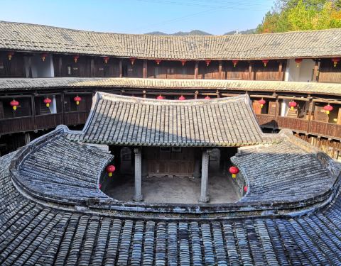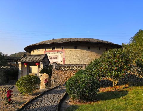 振福楼位于湖坑镇下南溪,依山傍水,风景十分秀丽。“凤起丹山秀,蛟腾碧水环”。这幅门联相当准确地描述了振福楼和周围环境和谐构成的一幅山乡风景图。振福楼的大门面对着哗哗而来的南溪。溪面宽阔平缓,河里大...
