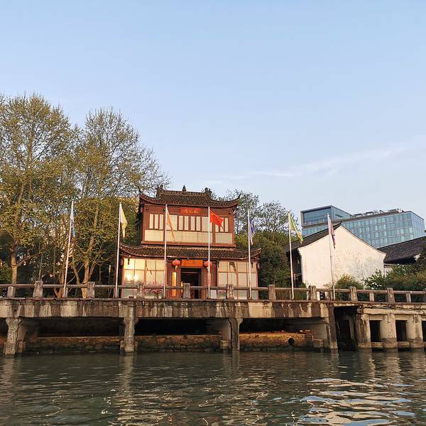 竖起一座古典又特别的牌坊,数根柱子组成了几组门洞的形象,两副对联:北往南来千里碧波贯今古、湖光...是京杭大运河杭州段上的一个大型码头,现在仍肩负着客运、旅游的功能。由于地处西湖文化广场对开的运河拐弯处,拥有绝佳的观景景致。在码头的入口处,竖起一座古典又特别的牌坊,数根柱子组成了几组门洞的形象,...是京杭大运河杭州段上的一个大型码头,现在仍肩负着客运、旅游的功能。由于地处西湖文化广场对开的运河拐弯处,拥有绝佳的观景景致。在码头的入口处,竖起一座古典又特别的牌坊,数根柱子组成了几组门洞的形象,两副对联:北往南来千里碧波贯今古、湖光山色满城佳气蔚葱茏,夹城夜月半道春红若飞凌波驾艇讵名赏会、漕运阵樯安澜剪孽果欲揽月登舟宜允梦寻,满满的文化底蕴。 展开 2019-12-12 23:48