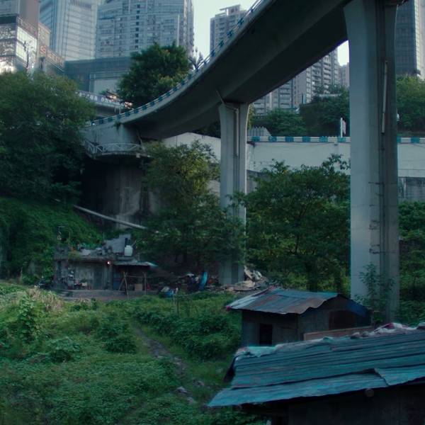 地址:南岸区菜园坝长江大桥南桥头铜元局轻轨站附近。 72米高耸的桥墩上是全国最高的匝道桥,苏家坝立交桥。超大螺旋的弯道,犹如游乐园的过山车,第一次开车经过,看着桥下的风景,真还有点胆战心惊。电影里小北的家就搭建在这巨型的桥墩下面,导演估计也想体现这小年轻在城市中渺小无助的孤独感。(电影截图)巨大的反差,正是电影所需要的,导演你真的太会挑地方了。