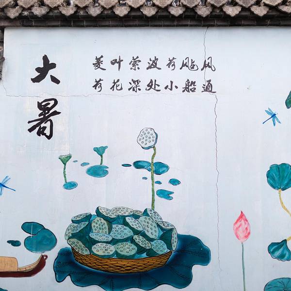 毗邻全球“四大花海”——千垛菜花,有一处美丽的田园乡村,东罗村环平旺湖而建,依垛而居,是江苏省四星级乡村旅游区,2017年入选江苏省特色田园乡村建设首批试点村,在旅游以及经济的发展下,兴化的水乡田园乡村,当地村民的生活也发生了翻天覆地的变化,家乡也建设的越来越美好,形成了以东罗村为代表的一批美丽新乡村。春天里的东罗村,被一片碧水环抱着,房前屋后开满了鲜花,油菜花、桃花、梨花交相呼应,可谓垛田斑斓如画,河港碧波荡漾。入口广场上有很多儿童的游乐设施,空中绳索、秋千应有尽有。东罗村里的房屋,全是青砖黛瓦,河道两岸绿树环绕,二十四节气的手绘画画满了整个墙面,东罗村中设置了入口广场,村民服务中心,大礼堂,村民广场,村里的孩子们就在广场上踢球嬉戏,顿时感慨现在的小孩子真是太幸福了。乡村发展展览馆展示了东罗村旧时的生活场景和东罗村的发展历程。如果来看油菜花的话,也可以选在住在东罗村,村里有一家高颜值的临水民宿——耘垛,在东罗村的深处,被各种繁盛的化掩映着。民宿的环境十分安静,房间内的设计可以说是非常文艺了,民宿的大厅内还有孩子们喜欢的手工课、阅览室,大人们就喝喝茶聊聊天,油菜花香扑鼻而来。我们午餐就在村里的大食堂用餐,让人想起曾经的公共食堂的感觉。靠水吃水,这里是品尝河鲜的打卡地哦,兴化的小龙虾是最出名的啦,一定要来一份尝一尝。