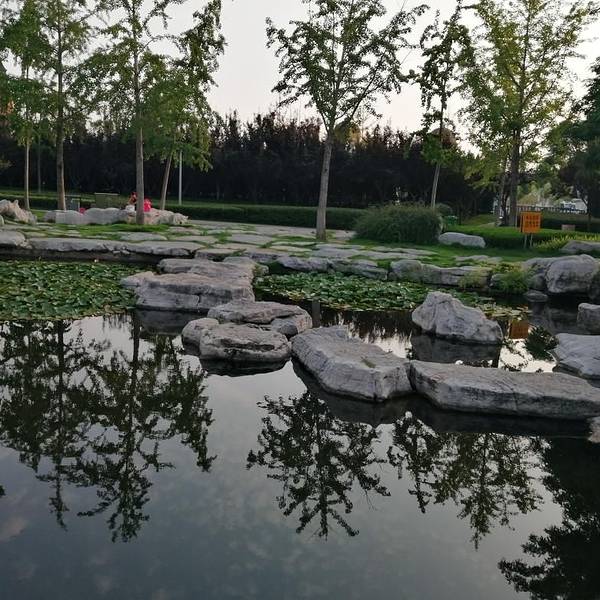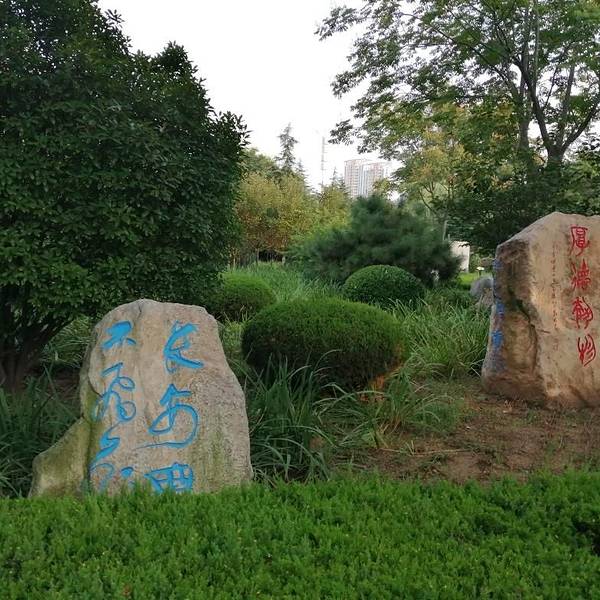 到临沂市内路过书法广场,于是停车观赏一番。广场里也有一处公园。往书圣阁方向走还有一处临沂园