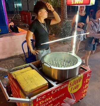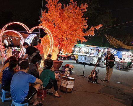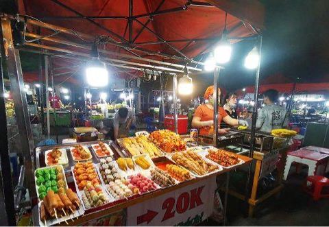 吃的喝的只有一小区, 逛得很快就逛完了, 吃的摊贩都有明码标价, 也可以用英文简单沟通, 很方便, 我们找到海鲜摊贩点了海鲜, 两个人点了四五样一共吃了210kvnd, 价钱还算可以。感觉是Danang的唯一一个夜市集,看完...