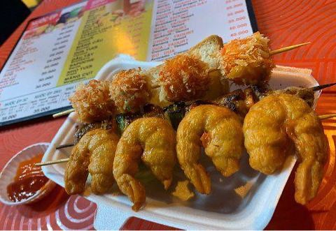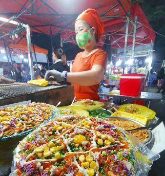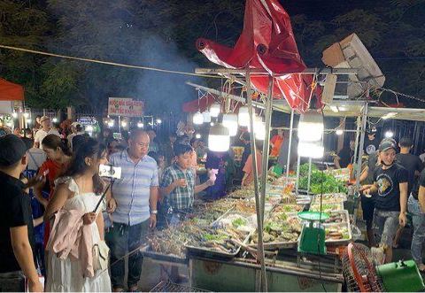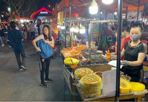 吃的喝的只有一小区, 逛得很快就逛完了, 吃的摊贩都有明码标价, 也可以用英文简单沟通, 很方便, 我们找到海鲜摊贩点了海鲜, 两个人点了四五样一共吃了210kvnd, 价钱还算可以。感觉是Danang的唯一一个夜市集,看完桥表演可以来这里行框和吃东西,我们在这里品尝海鲜,很有特色,非常热闹。很值得安排时间来这里。