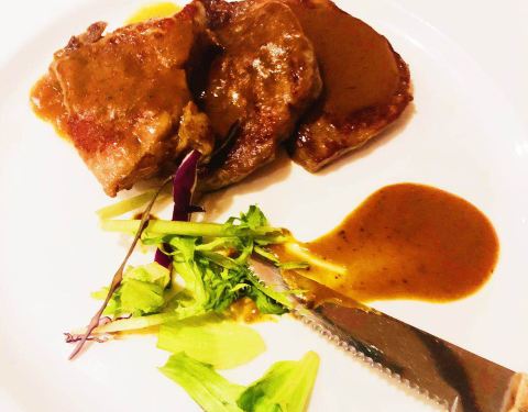 - 今天的牛排很失望,像拼的一样,叉子一撕就烂了,以后再也不会点这个了。冲着德国猪肘子来的,味道一如既往