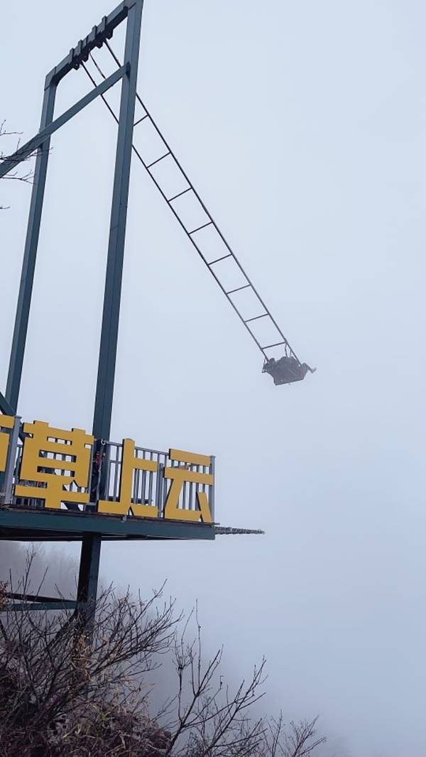 ...千:1100米的悬崖秋千,荡出去的第一秒,心都要飞出去了,在云海之上荡秋千是一种无比奇妙的感受
