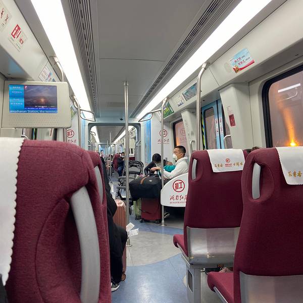 黄花机场在宝安呆了半天,回到了我大湖南长沙轻轨坐轻轨做到高铁南站,看到长沙字样特别亲切轻轨内景坐轻轨的大部分人都带着口罩高铁南站内景我长这么大第一次觉得高铁南站空无一人高铁南站西广场外景回到熟悉的...