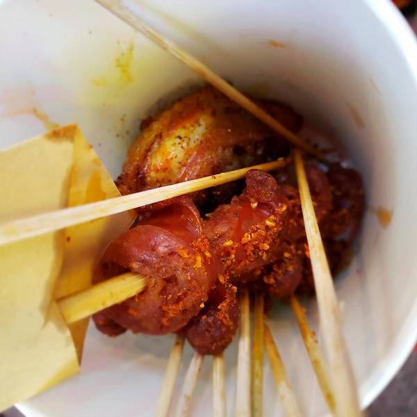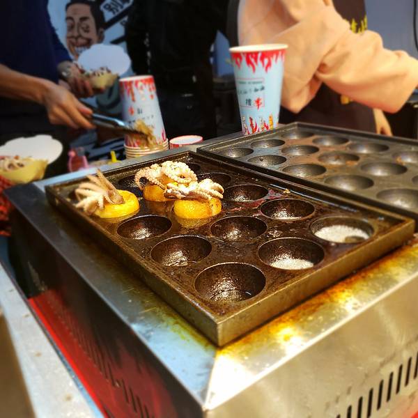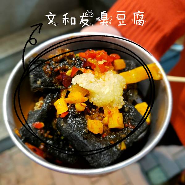 跛子街、太平街、火宫殿都在这边,可以自己逛逛我们一起画的话 PS:其实就是用电脑加了个颜色画好上传就出现在投影仪上面啦在这里买了“超大章鱼小丸子”(超级难吃,是一只小章鱼,但是一点味道都没有),长沙大肠(超级难吃),烤鱿鱼(和武汉的味道差不多,不推荐)“超大章鱼小丸子”就是这样做出来的25元/份,一共四个。成品是这样的,反正不好吃,极其不推荐!!!这个肠不好吃 他又在旁边买了一份鸡翅包饭(图片中,肠的上面就是),我尝了一口,味道还可以这个臭豆腐是真的好吃,外焦里嫩就是来形容它的,强烈推荐!!! 不是我当天吃撑了,会再来一份