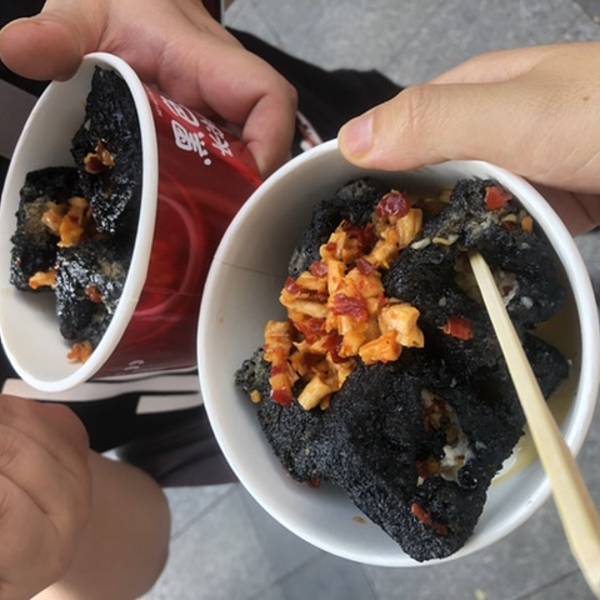 成品是这样的,反正不好吃,极其不推荐!这个臭豆腐是真的好吃,外焦里嫩就是来形容它的,强烈推荐