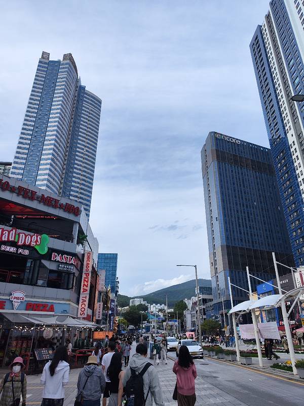 海云台海水浴场旁边的步行街,真的是好方便啊,要是住在海云台附近的话,这个步行街可以解决吃饭啊娱乐啊各种,店铺真的是好多啊,什么类型都有,上午还是很冷清的,下午的话还是很热闹的,海云台很舒服,很适合来海边散散步啊什么的。