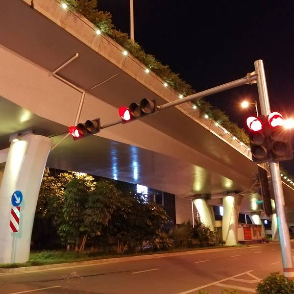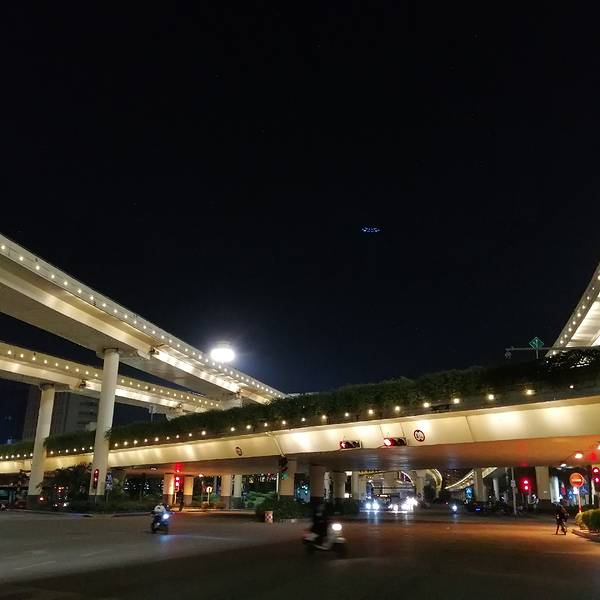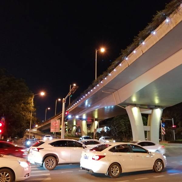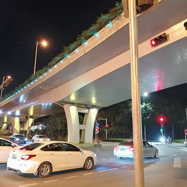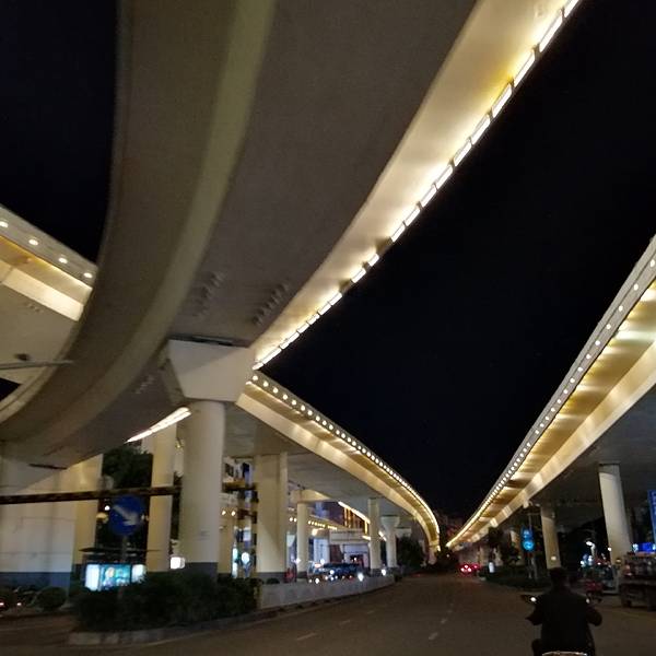 路过青竹立交,上青山路,还有一条横跨青山路的立交桥,流线型的桥身在夜色中显得很漂亮。