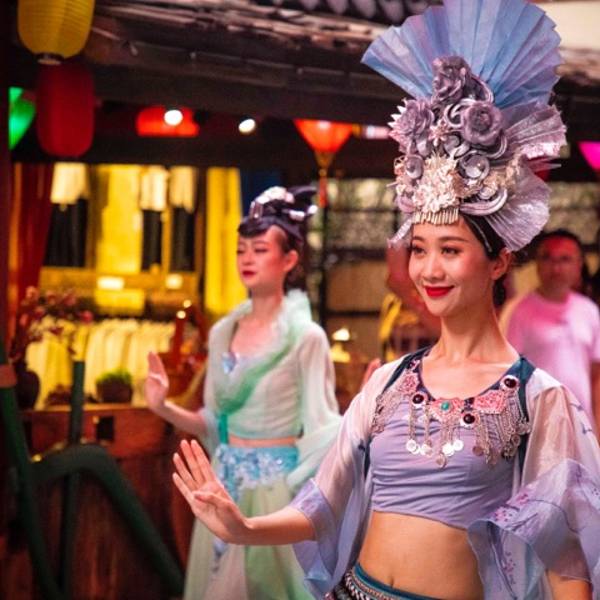 张家界千古情景区融入了当地的民俗文化,有着浓郁的民族风情。往往从到达景区时的遥遥一见就能感受到了。大庸古街内非物质文化遗产和手工作坊云集,可以近距离体验非遗文化的魅力。陶源秘境内赶尸鬼屋、蚩尤呼风...