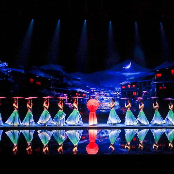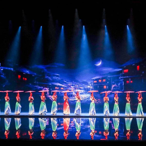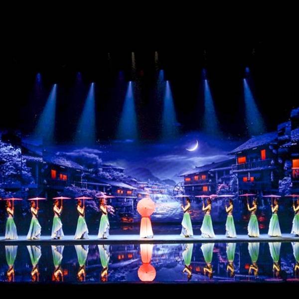 整场演出分为《沧海桑田》《武陵仙境》《天子山传说》《小城往事》《马桑树》《爱在湘西》几个章节,...