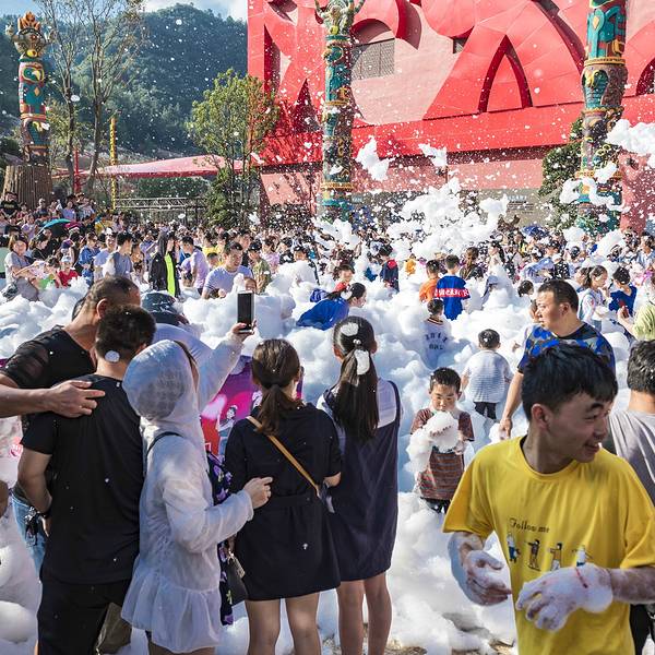 2⃣️、电音泼水节!炎炎夏日,怎能少了电音和水花四射呢!电音泼水节现场简直燃爆了,无论大人还是小孩,都不约而同在电音中嗨了起来,音乐躁动着,水花到处泼着,放眼望去,一片欢声笑语!