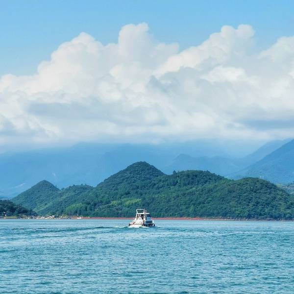 坐上旅游车到达东江大坝景区,大坝、峡谷、湖水交相辉映,连成一片。 我们走到码头坐上游船准备前往兜率岛,因为我们出发的比较早,也不需要排队很久就顺利上船了。东江湖旅游码头东江湖,碧波清粼的湖面星罗棋布地镶嵌着数十个岛屿,湖光山色展现出一派旖旎无比的山水风光,令人流连忘返。东江湖游船水天一色