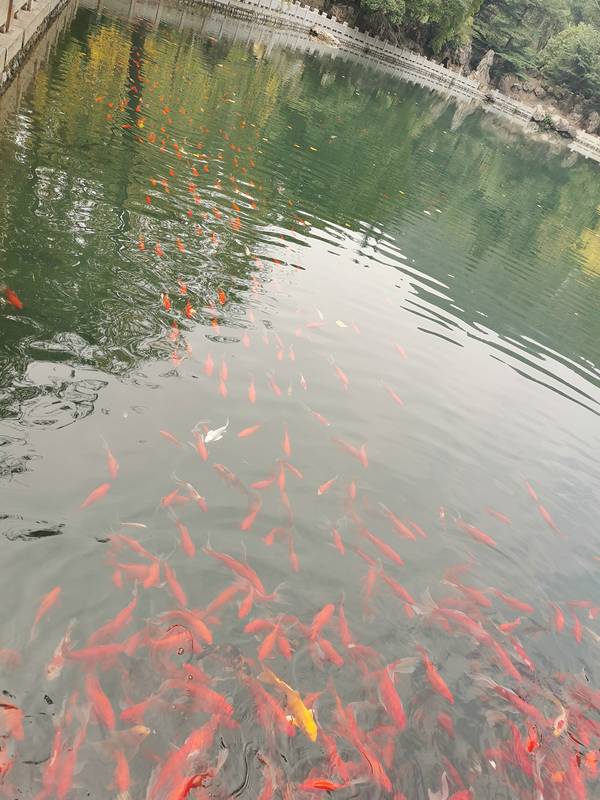 晋祠还是很大的,一开始我们进去之后,发现全是仿古建筑,特别失望。到这里,我们的行程就全部结束了这里是我的行程里唯一一个4A级景区,但是我给5星。有句话说不到晋祠,枉到山西。晋祠还是很大的,一开始我们进去之后,发现全是仿古建筑,特别失望。结果发现这些都只是铺垫,重头戏在后面。大门口,离真正的晋祠...这里是我的行程里唯一一个4A级景区,但是我给5星。有句话说不到晋祠,枉到山西。晋祠还是很大的,一开始我们进去之后,发现全是仿古建筑,特别失望。结果发现这些都只是铺垫,重头戏在后面。大门口,离真正的晋祠还远呢晋祠的难老泉、仕女像、圣母像被称为晋祠三绝,确实不同凡响。这里是圣母殿。我没有拍人像距今一千多年了,很是壮观。供奉的是晋王叔虞之母。木雕盘龙圣母殿门前每根柱子上都有雕刻得栩栩如生的木雕龙盘在上面。据介绍,这是中国现存最早的木盘龙雕刻。距今已经一千多年了。这个树是和圣母殿同岁的。而且是树木有情的证据。殿的两旁本来种有两棵树,但左边那棵树被雷劈死了,右面这棵就慢慢地开始要倒了,结果在它前面又长了一棵小树,把它支撑住了。(此处省略脑补的1000字爱情文)殿内的侍女图,一共41个,形态各异,仿佛是不同职位的女官。很考古价值。难老泉。牌匾也是很有故事的,但是我忘了。在晋祠西面有一个湖,就叫西湖。这是女儿最深的记忆点。我们带了馒头和面包来喂鱼,这里的鱼儿可能很少像西湖的花港观鱼经常被人投喂,我们一喂食,成群结队的鱼儿就过来了。点点橙色在水中,灵动的样子,很是让人心生愉悦。因为有些景拍不出来,比如很有建筑特色的鱼沼飞粱,很有铸造智慧的金人台上的金人。
