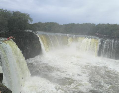 确切的说这个景点或者是游乐项目,不应该叫做镜泊湖跳水,而是应该改为吊水楼瀑布跳水。因为整个跳水活动是在吊水楼瀑布进行的,每天的10点和下午2点都会有两场这样的惊天动地的表演进行,之所以说是惊天动地,真的没有人敢从那么,急得水流直上跳下,当穿着红裤衩的师傅从上面一跃而起的时候,旁边都发出了惊叹声,而这声惊叹也就仅仅持续1~2秒钟时间,因为一两秒钟时间之后是否已经落入了池潭之中?