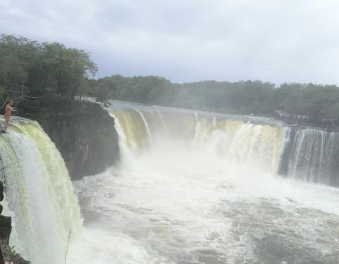 非常有名的一个5a级景区,q景区的第一个景点就是吊水楼,有一个人常年在吊水楼瀑布跳水,冬季也有...