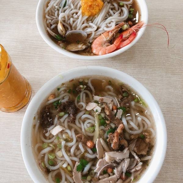 「#套餐:18年老店推荐﹖选1」味道很好吃了两次料也足粉也大碗女孩子大碗吃不完海鲜抱罗粉里面有虾花蛤汤很鲜要辣椒有几种台下可以自取和十全抱罗粉有瘦肉猪肚都好吃东西新鲜干净还有虾饼可以尝尝也好不错图一十全...