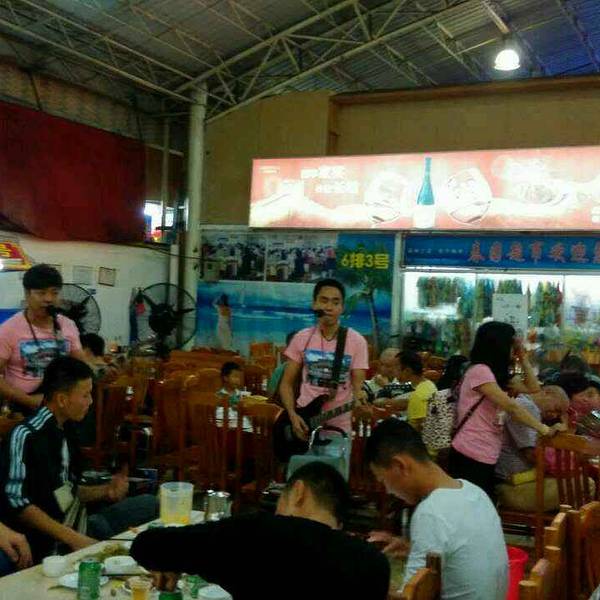 我们爷三刚到雪姐海鲜广场时大概是下午5点钟,当时诺大的广场就餐的也就星星点点的几桌,但一小时后我们的菜都上桌酒杯端起后,感觉其它桌十有六七的座满了人。酒过三杯,隔桌那边三个收费歌手就已音乐音响响起,万幸这三位在音响的配合下唱的还可以,之后就有其它背个破吉它一看就不入流的卖唱女不停的挨桌叫卖,再加上叫卖冷拼盘的衣着不整的女人时不时的贴身叫卖,那真叫一个乱。再加上先前各个加工摊位的拉客妹子的拉客抢客行为,更突显这里的特乱。
