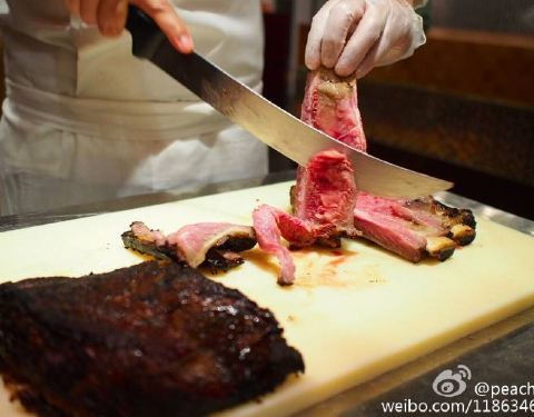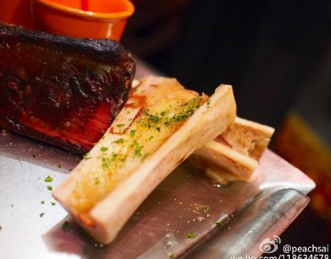 球星真的好帅啊~不过,我来浦东嘉里大酒店主要是为了吃,顺便才围观围观小鲜肉额,哈哈! 一直心水The MEAT?扒餐厅的战斧牛排好久好久,这次听闻又有“三剑客”牛排推出,不淡定了哟,怎么滴也得召集伙伴一起去尝...球星真的好帅啊~不过,我来浦东嘉里大酒店主要是为了吃,顺便才围观围观小鲜肉额,哈哈! 一直心水The MEAT?扒餐厅的战斧牛排好久好久,这次听闻又有“三剑客”牛排推出,不淡定了哟,怎么滴也得召集伙伴一起去尝新啦。 这家The MEAT?扒餐厅在嘉里大酒店的二楼,它家最多的装饰元素就是牛角,懂了,进门左手边就是一间醒肉房,里面的肉肉都是贴着时间标签的,大约要二十来天才能拿出来用。 餐前是面包和薯片,虽然一直很爱这种薯片的,但尝过它家的面包之后立马移情别恋了呀,不管是长着角脆脆的还是圆润带韧性的,都好喜欢哟,那种自然的带着麦香的口感真好。 冰镇海鲜拼盘看着就很赞,这个新鲜度是无可挑剔的,看似小个的牡蛎那口感可真棒,在淡淡的海水味中透着清甜,鳌虾、龙虾、雪蟹脚样样都好吃,忍不住我把龙虾钳也啃了,我好有耐心木有啊,那肉肉结实鲜甜可好吃啦哈哈,哦,我是来吃肉肉滴。 两个小推车先后出来啦,哦哦,激动啊,看着都很棒哎,1.8公斤的“三剑客”牛肋排是低温烹调一整天的M3谷饲安格斯牛肉,嫩嫩的口感带有汁水,看似粉粉的略带雪花的肉质入口却感觉不到油花,边缘部分的肉质更香更有幸福感。同样约1.8公斤的战斧牛排是用经过醒肉房21天排酸的澳大利亚5级和牛,用樱桃木烤箱高温烘烤而成,除了和牛的肉香还带有浓浓的樱桃木香味,纹理清晰的肉质比较有嚼劲,满溢的油花和肉肉让人很满足。这边一口,那边一口,告诉你:两种肉肉我都爱!哈哈...