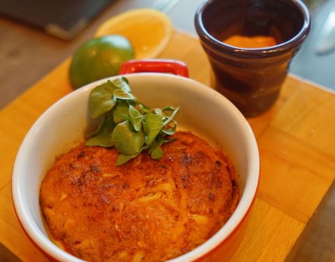 煎蟹肉饼配芒果沙拉及辣味蛋黄酱