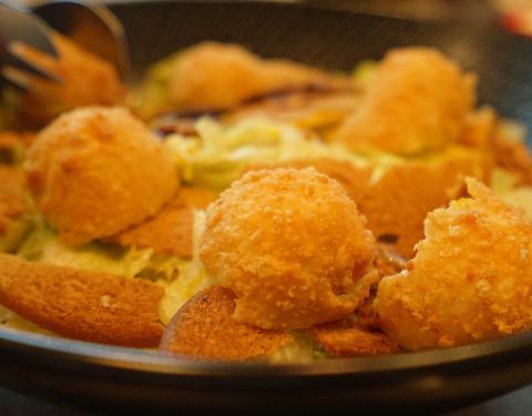 - 海鲜有阿拉斯加雪蟹、冻花蟹、大虾和海螺,给力!好多混合色拉,多种搭配