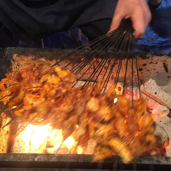 鲜香美味的羊肉串,即使是炎炎夏日,还是让我不能自已。小时候总是想:不知道多少串羊肉串我会吃饱。至今没有答案。