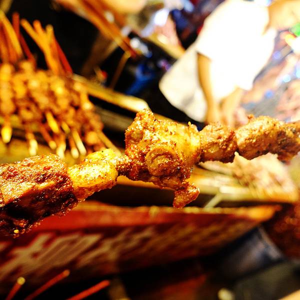 正宁路口的羊肉串,肉块大而嫩,10块钱4串,羊肉块外焦里嫩,咬下去肉汁流入口中,混合着肉香,没有过多的膻味。