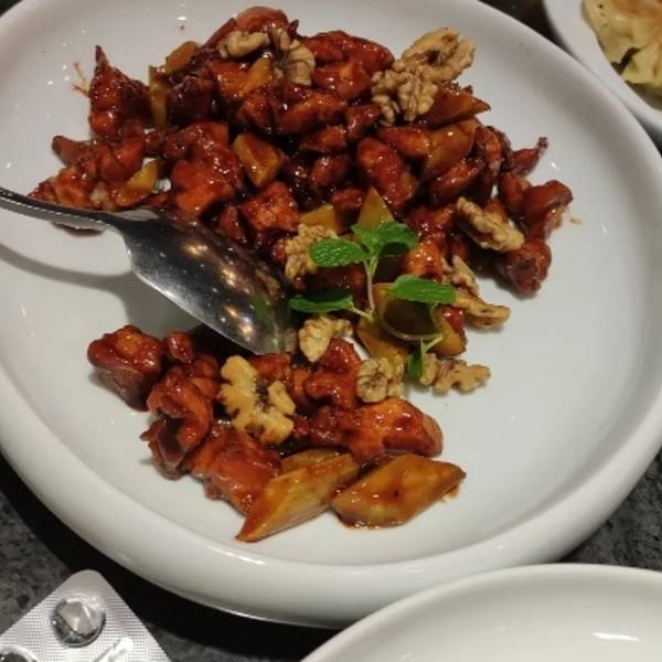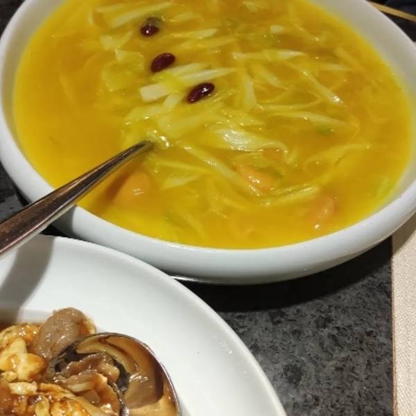 砂锅羊头汤,这个十分惊喜,不同于一般的羊汤,奶白色的汤特别浓稠,味道不膻,多洒些胡椒粉喝,我们三个人点88一份的都没喝完。沙松尖特别解腻,有特色。 糖卷果,味道不错,中规中矩。 总之,在老字号中,无论从味道还是服务环境,都算不错的用餐体验,还会再来。