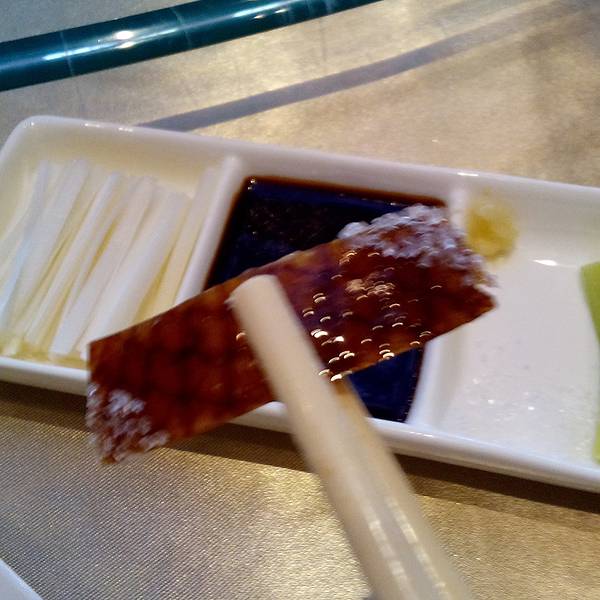 这家是要加10%的服务费的,好处是服务员会帮你包好要肉(但是不会送到你嘴里,哈哈),作为普通劳动人民的我们真是很不适应啊,然后鸭架子是给下个汤的,但是那么大一只鸭架子说是去做汤,但是上来的汤真是清汤啊,意思鸭肉都没有,不懂是咋回事呢,但是记得确实很好吃就是了。
