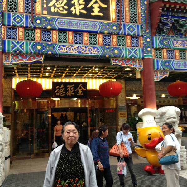 来了北京岂能不吃烤鸭呢?吃烤鸭岂能不吃全聚德?顺便逛逛王府井,到这里交通还是很方便的,地铁或者公交过来的很多,非常繁华的地段,各类商厦shopping mall林立,还有王府井小吃街。沿着一路逛过去应该还是很容...来了北京岂能不吃烤鸭呢?吃烤鸭岂能不吃全聚德?顺便逛逛王府井,到这里交通还是很方便的,地铁或者公交过来的很多,非常繁华的地段,各类商厦shopping mall林立,还有王府井小吃街。沿着一路逛过去应该还是很容易找到全聚德的,2个人可以点个一只鸭的套餐再点点其他什么菜就够了,量很足的,如果一个人来的话建议点个半鸭套餐就够了,尤其对我们南方人来说,呵呵, 价格里面会再加上服务费什么的会算在账单里面的